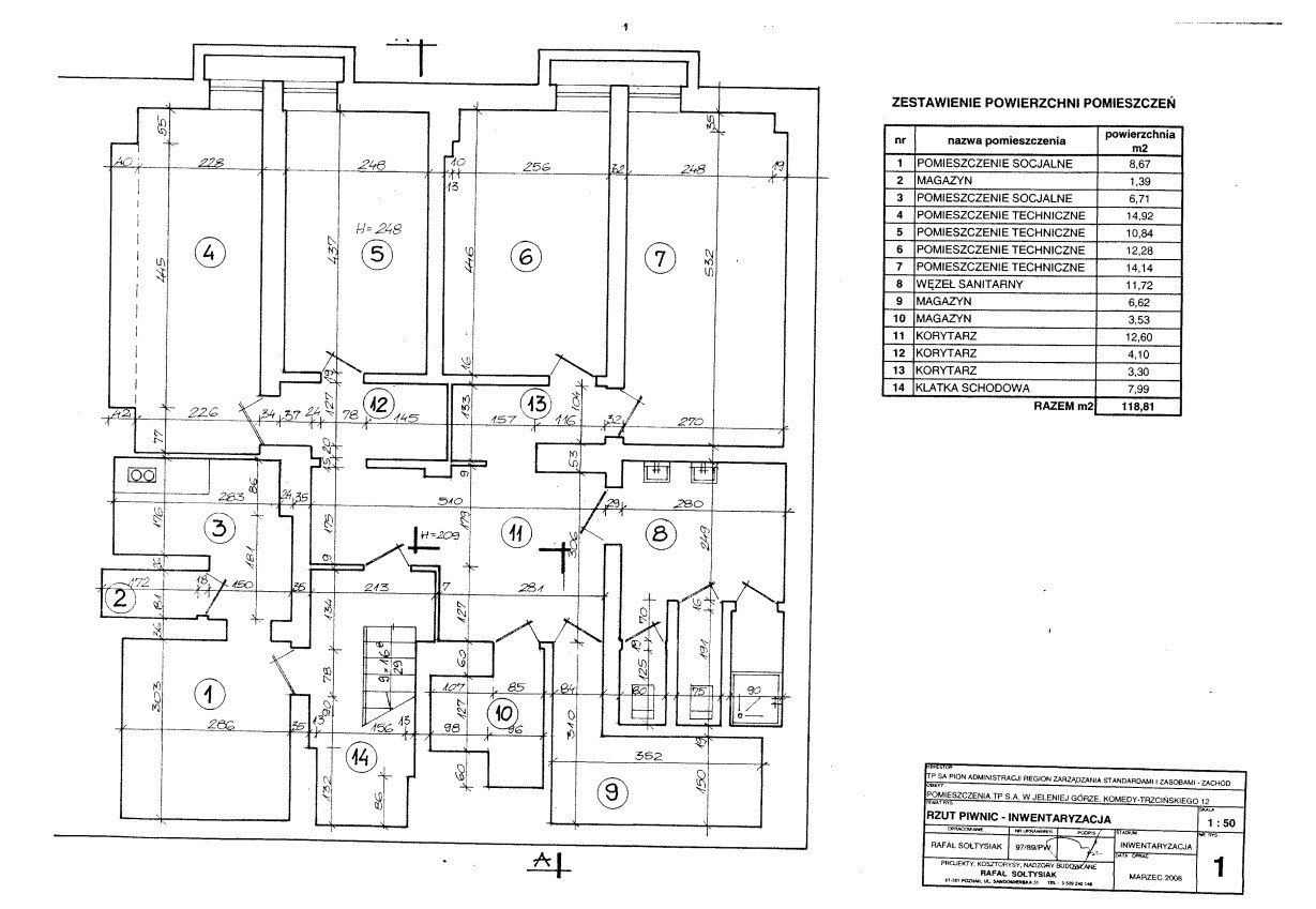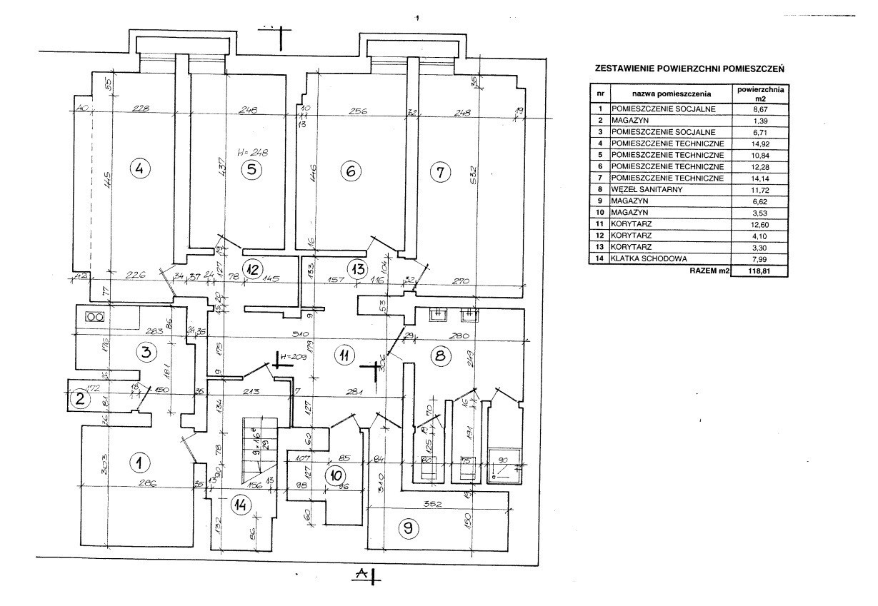 Przyziemie (piwnica) ok. 118,81 m² – powierzchnia obejmująca 10 pomieszczeń o różnym metrażu, które można zaadaptować według własnych potrzeb (np. gabinety, magazyn, pracownię, zaplecze socjalne itp.).