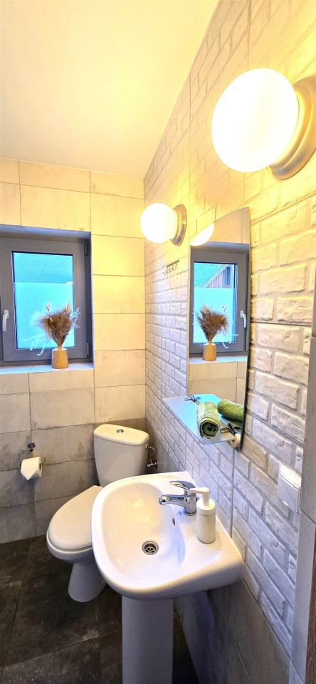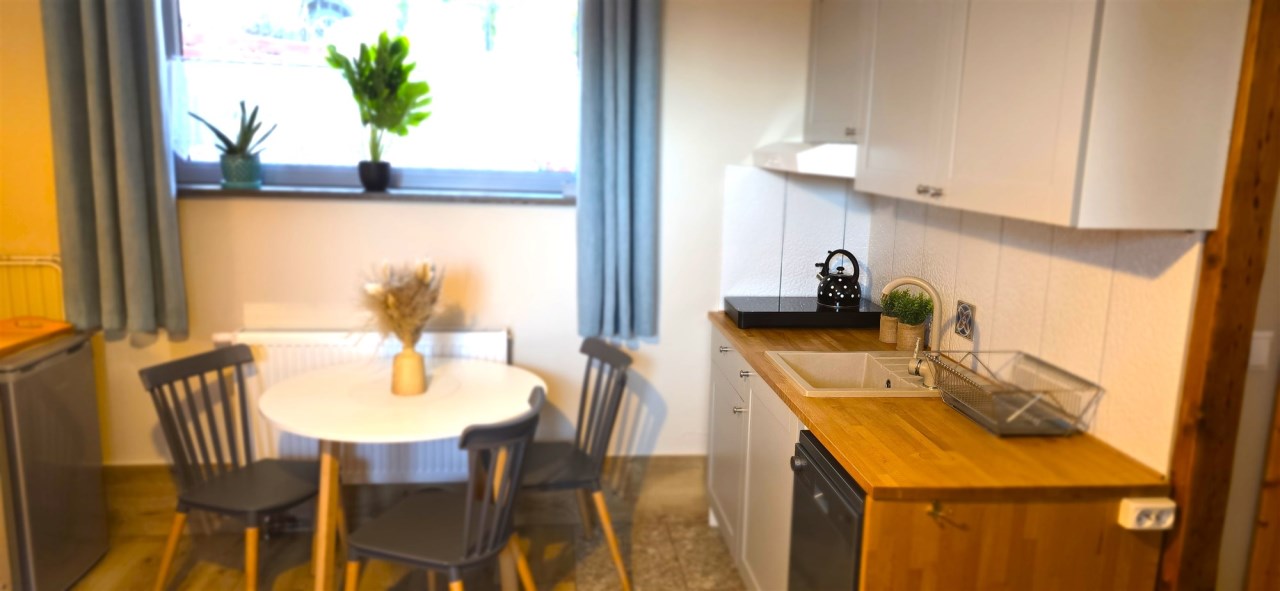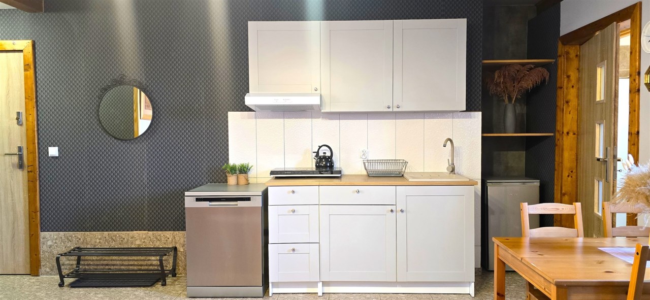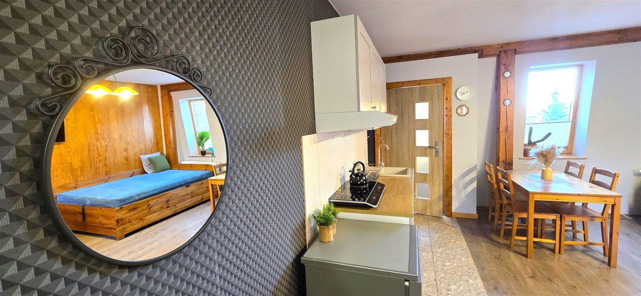 Obok głównego budynku jest dołączony budynek gospodarczy, który zaadaptowany jest na mieszkanie 1-pokojowe dla właścicieli.